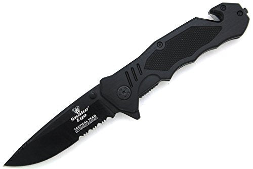 Snake Eye Tactical All Black Rescue Style Spring Assisted Folding Pocket Knife Hunting Camping Fishing Outdoors Razor Sharp Blade (383)
